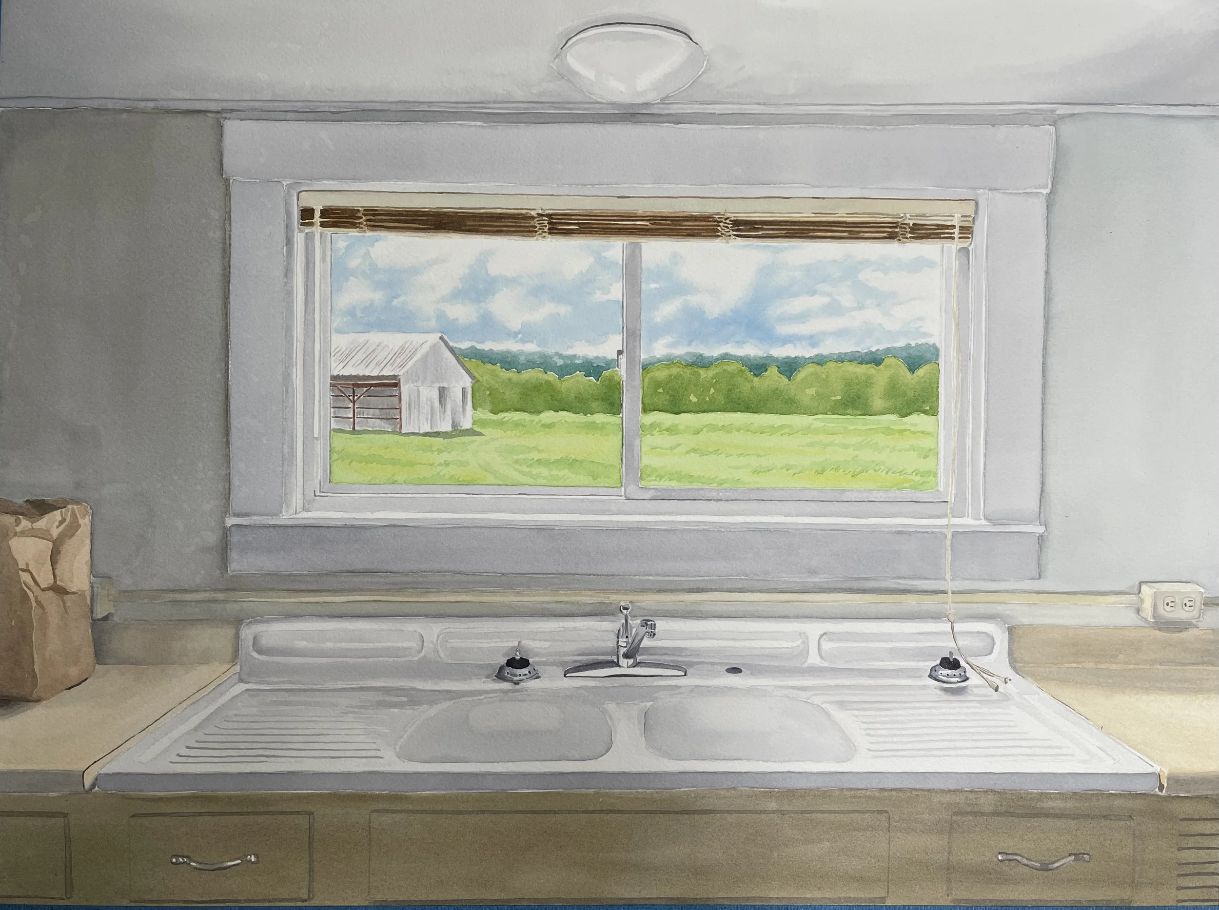 Connecticut River (I could see by the line of trees, there’s a river nearby) (Watercolor, 14.75 x 19.875 ) Another medium I enjoy working with is photography. Using sourced personal images from traveling, I recreate scenes in watercolor that hold memories, evoke nostalgia, or make unusual and aesthetically pleasing compositions.